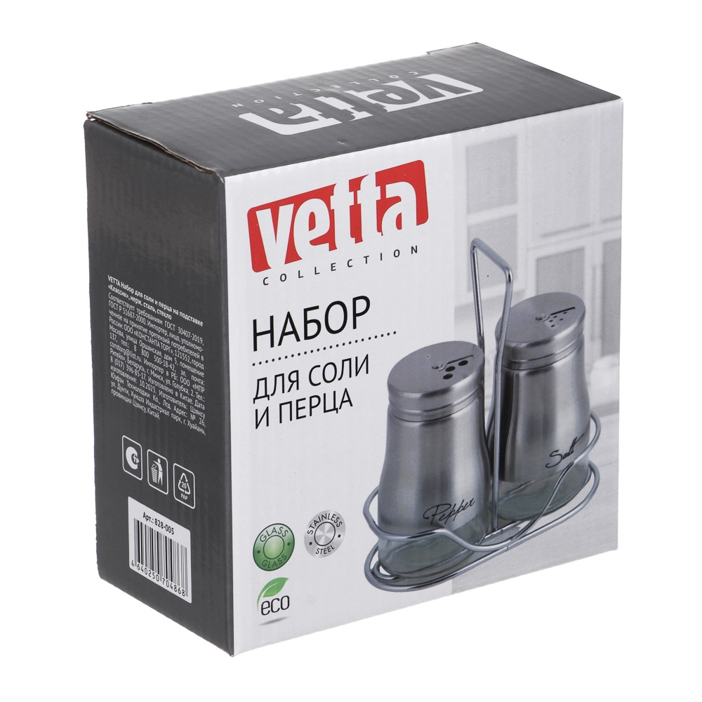 VETTA Набор солонок 2шт с подставкой "Классик" , нерж.сталь, стекло