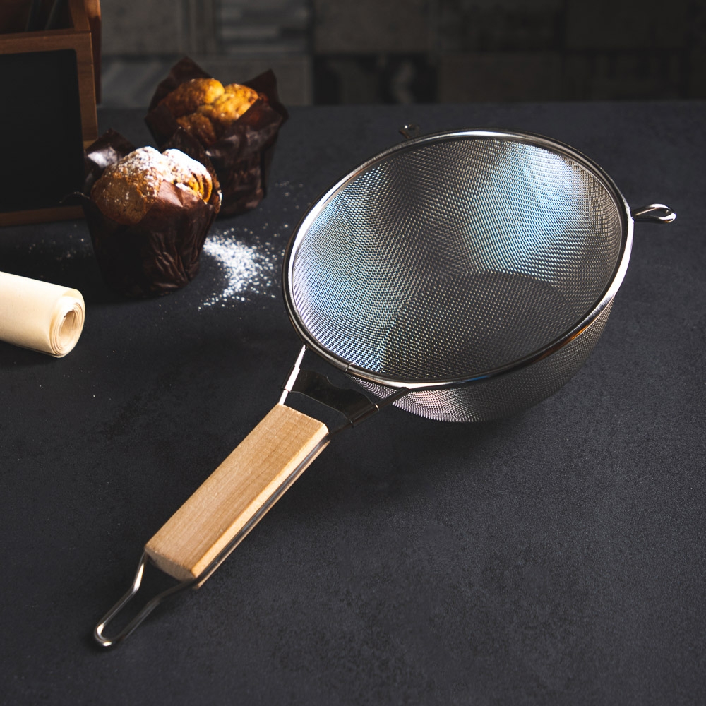 Сито из нержавеющей стали для фильтрации различных ингредиентов - от просеивания муки до процеживания чая от чаинок. Отлично выполняет свою функцию. Ситечко займет достойное место на вашей кухне.