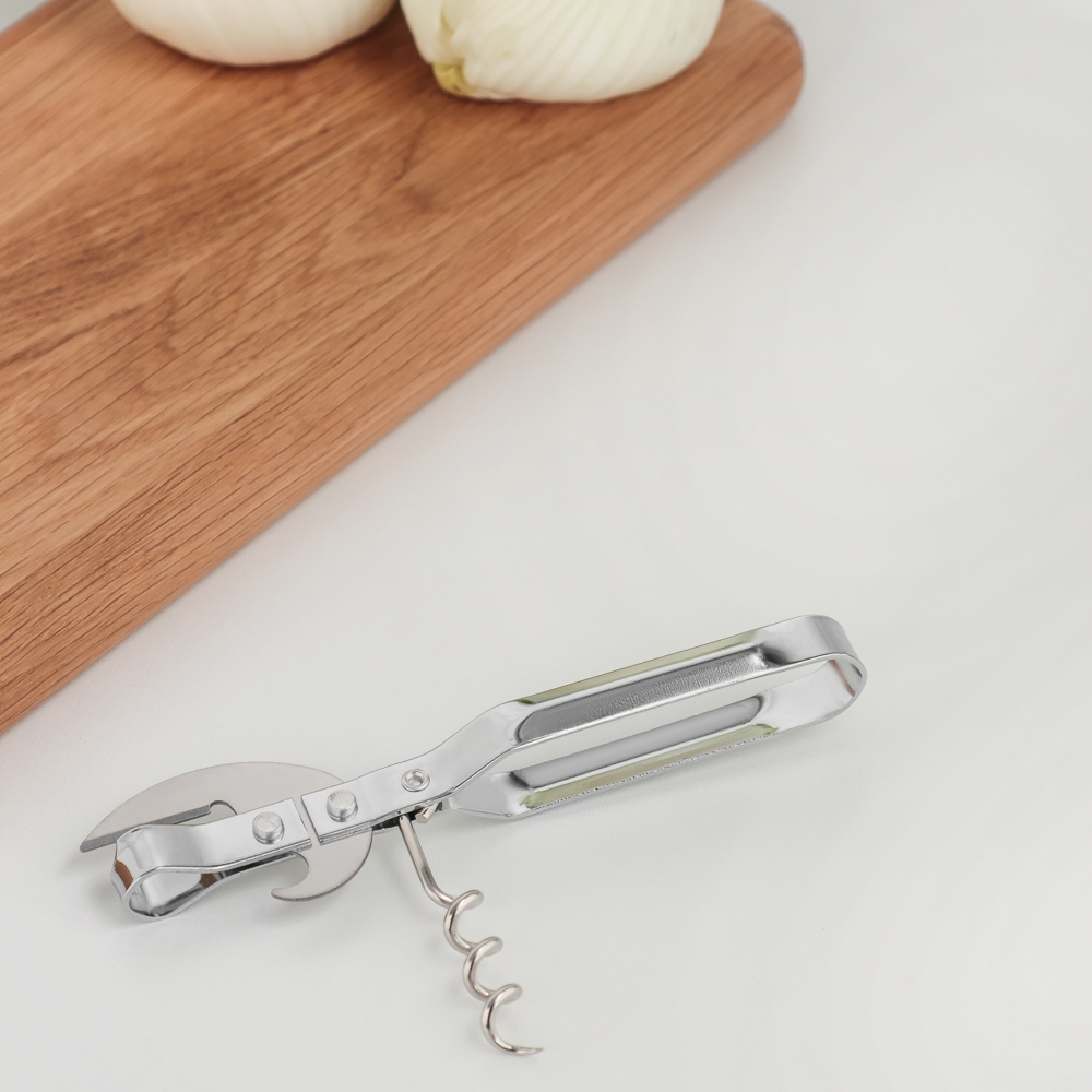 Штопор VETTA один из нужных приспособлений на кухне. Изделие 2 в 1: служит в качестве штопора и открывалки консервных банок. Простой и универсальный аксессуар. С его помощью можно открыть емкости разных типов.