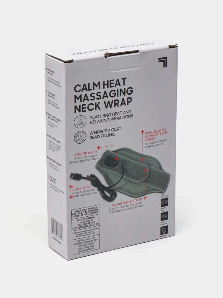 Вибромассажер для шеи с подогревом Calm Heat MassageМассажер для шеи с подогревом Calm heat massaging neck wrap - представляет собой устройство, которое позволит провести приятную массажную процедуру и снять боли, усталость в районе шеи. Есть функция подогрева, которая сделает процесс воздействия на зону массажа более полезной и комфортной. Разные рабочие режимы дадут возможность выбрать именно тот, который требуется пользователю для достижения нужного эффекта от применения массажера. Характеристики: Тип товара: массажер. Подогрев: есть. Зона применения: шея. Тип массажа: вибрационный, расслабляющий. Количество режимов: 3.Мощность массажера: 5В. Материал внешнего исполнения: мягкий текстиль.