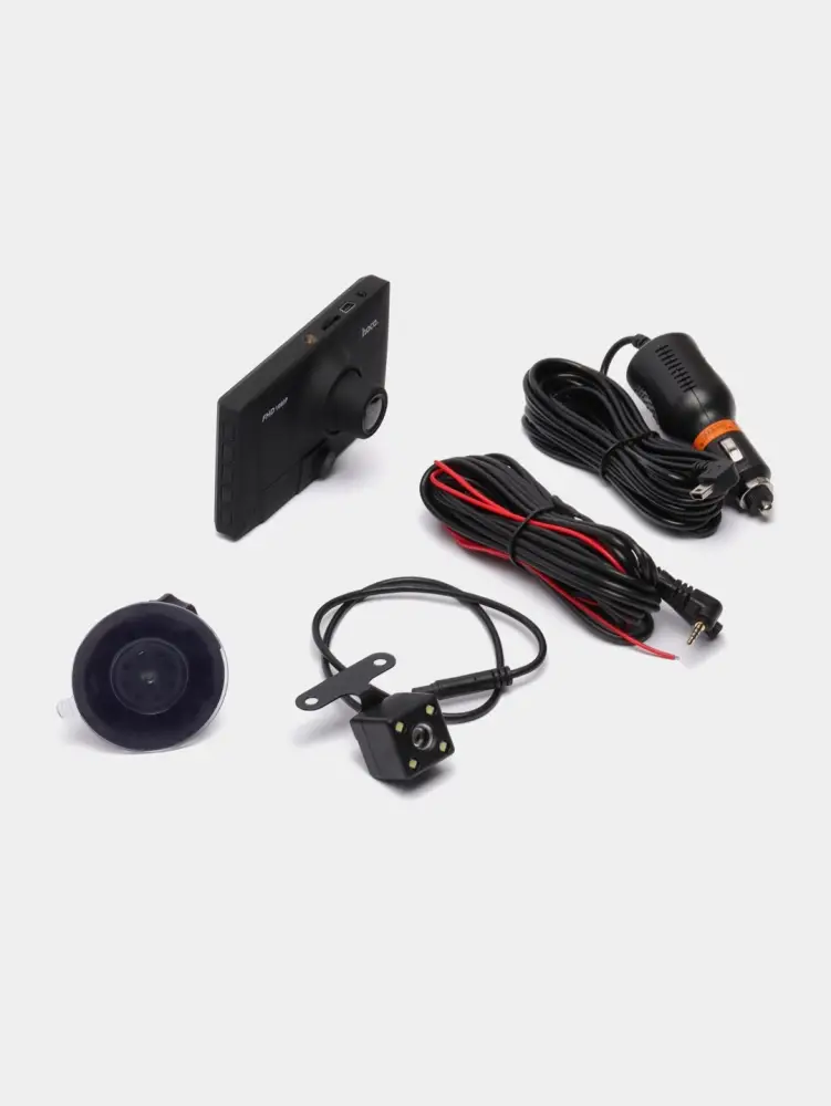 | Комплектация | видеорегистратор с 2 камерами; камера заднего вида; Автомобильное зарядное устройство; крепление держатель на присоске |