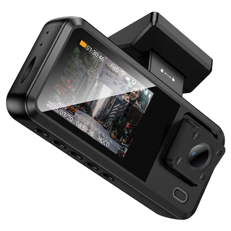 Видеорегистратор DV15 с камерой записи в салон от HOCO выполнен в стильном сером цвете и представляет собой надёжное и функциональное устройство для записи видео во время движения транспортного средства.