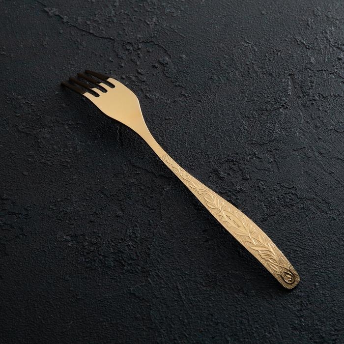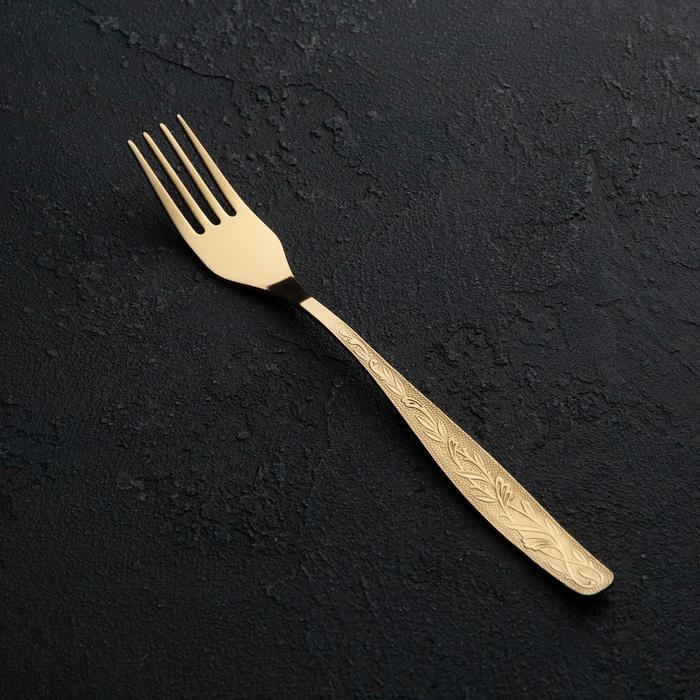 Вилка столовая «Уралочка», длина 19,5 см, толщина 2 мм, с полным декоративным покрытием, цвет золотой