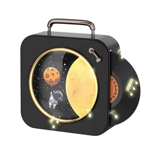 Беспроводная колонка с оригинальным дизайном создаст атмосферу музыкального винилового наслаждения в любом месте. Эта портативная мини Bluetooth 5.0 модель сочетает в себе отличное звучание и захватывающую светомузыку. Несмотря на компактный размер, передает мощные и чистые басы. Встроенные часы позволяют использовать устройство на столе в спальне или гостиной, где можно просыпаться под любимые мелодии или наслаждаться белым шумом для комфортного сна. Колонка блютуз маленькая и проигрыватель светильник выполнен в стиле ретро, оснащен уникальной LED подсветкой с питанием от аккумулятора позволяет настроить узоры освещения, двигая рычажок по пластинке, что способствует здоровому сну и глубокому расслаблению, создавая уют в доме. Проектор ночника в детской комнате поможет малышам быстро уснуть. Также это настоящий спутник для пикников и путешествий. Виниловый проигрыватель с подсветкой работает автономно до 6 часов и поддерживает зарядку от сети через USB и AUX, что обеспечивает непрерывное наслаждение музыкой. Музыкальная колонка в виде пластинки – это универсальный подарок светомузыки для людей любого возраста. Она порадует как детей и подростков, так мужчин и женщин своим качественным звучанием и захватывающими световыми эффектами. Слушайте любимые треки, наслаждайтесь динамическим светом и погружайтесь в атмосферу радости. Это лучший подарок для любимых всех возрастов!