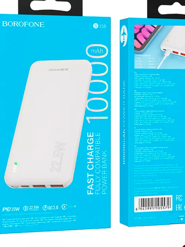 BJ38 - надежное решение для беспрерывного питания всех ваших гаджетов. Компактный Power Bank - идеальный выбор для всех кому срочно нужна зарядка, он обеспечивает быструю и эффективную зарядку благодаря реверсивному USB Type-C порту и универсальному выходному USB-порту. Теперь вы можете заряжать несколько гаджетов одновременно без потери времени и энергии. Универсальный повербанк идеально подходит к любому смартфону, телефону, планшету и фотоаппарату. Он также совместим с беспроводными наушниками.