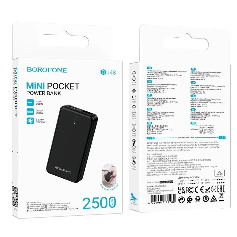 1. Емкость: 2500mAh 9.25Wh Номинальная емкость: 1400mAh