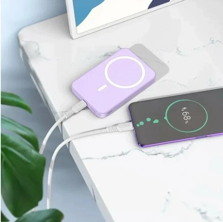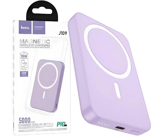 MagSafe Hoco j109. Портативный аккумулятор Hoco J109 MagSafe станет отличным дополнением для вашего iPhone, благодаря которому вы дольше сможете пользоваться всеми его возможностями без ограничений. Данная модель источника питания обладает емкостью 5000 мА*ч, благодаря чему заряда вашего смартфона хватит на значительно большее время. Для дополнительного удобства устройство поддерживает технологию быстрой беспроводной зарядки за счет мощности в 15 Вт. А напрямую через провод выдает 20Вт. Портативный аккумулятор Hoco J109 MagSafe также отличается компактными размерами и небольшим весом, что позволит с легкостью установить устройство на заднюю панель вашего смартфона. Модель выполнена в корпусе из качественного и приятного на ощупь пластика, а также отличается лаконичным дизайном. Для зарядки портативного аккумулятора используется фирменный коннектор Lightning. Устройство поставляется в фирменной упаковке. Перед первым употреблением устройство желательно полностью зарядить! Время первой зарядки будет около 2 часов. При выборе устройства следует понимать, что данный девайс был создан инженерами для экстренной дополнительной подзарядки телефона в пути без розеток и провода на недолгий промежуток времени. Это устройство позволит зарядить стандартный телефон полностью, версию "макс" - не менее 80%. Встроенные магниты этой версии устройства сильны. Емкость, мА•ч5000 Выходное напряжение5 В НазначениеДля мобильного телефона Совместимые устройства: Список совместимых устройств с анимацией MagSafe: Apple Iphone 12 mini Apple Iphone 12 Apple Iphone 12 pro Apple Iphone 12 pro max Apple Iphone 13 mini Apple Iphone 13 Apple Iphone 13 pro Apple iPhone 14 Apple iPhone 14 max Apple iPhone 14 pro Apple iPhone 14 pro max Apple Iphone 13 pro max Со специальным чехлом, поддерживающим функцию MagSafe, будет работать так же корректно, но без фирменной анимации, на iPhone моделей iPhone 8 iPhone 8 plus iPhone X iPhone Xs iPhone Xs MAX iPhone XR iPhone 11 iPhone 11 PRO iPhone 11 PRO MAX. Химический тип -Li-pol. Быстрая зарядка- Да. Особенности- быстрая зарядка Quick Charge. Основной материал корпуса- пластик. Длина, мм- 150. Ширина, мм- 80. Высота, мм -20. Вес товара, г – 150. Упаковка- коробка.