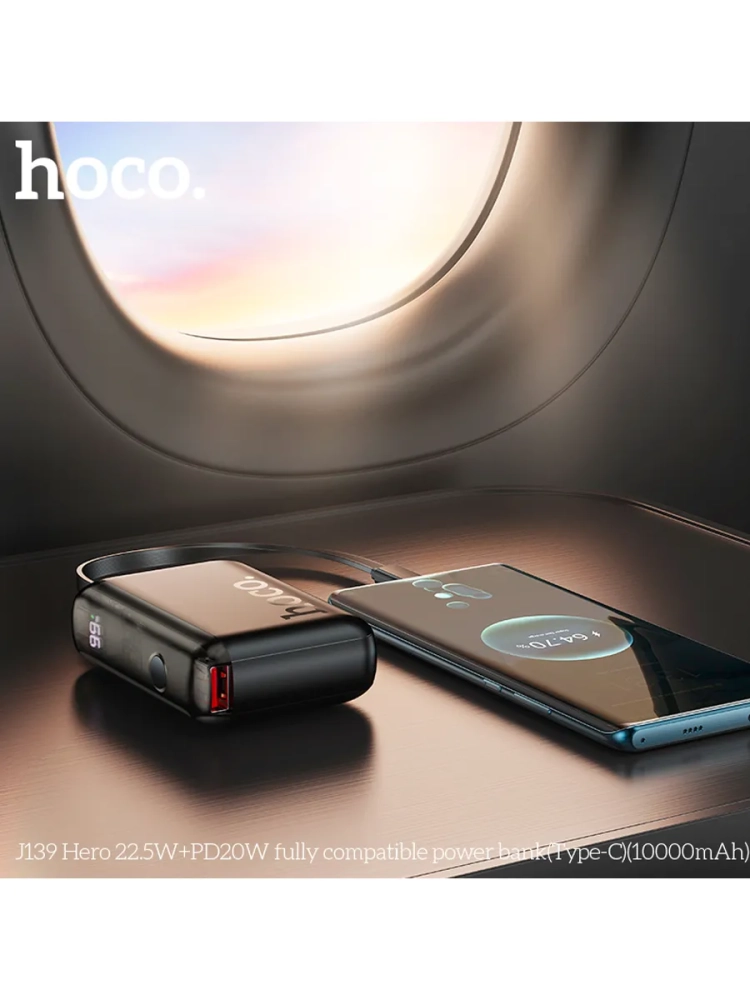 Hoco J139 - внешний аккумулятор ёмкостью 10000 mAh (номинальная - 5400 mAh) со встроенным кабелем Type-C. Он станет идеальным спутником для вашего мобильного устройства.