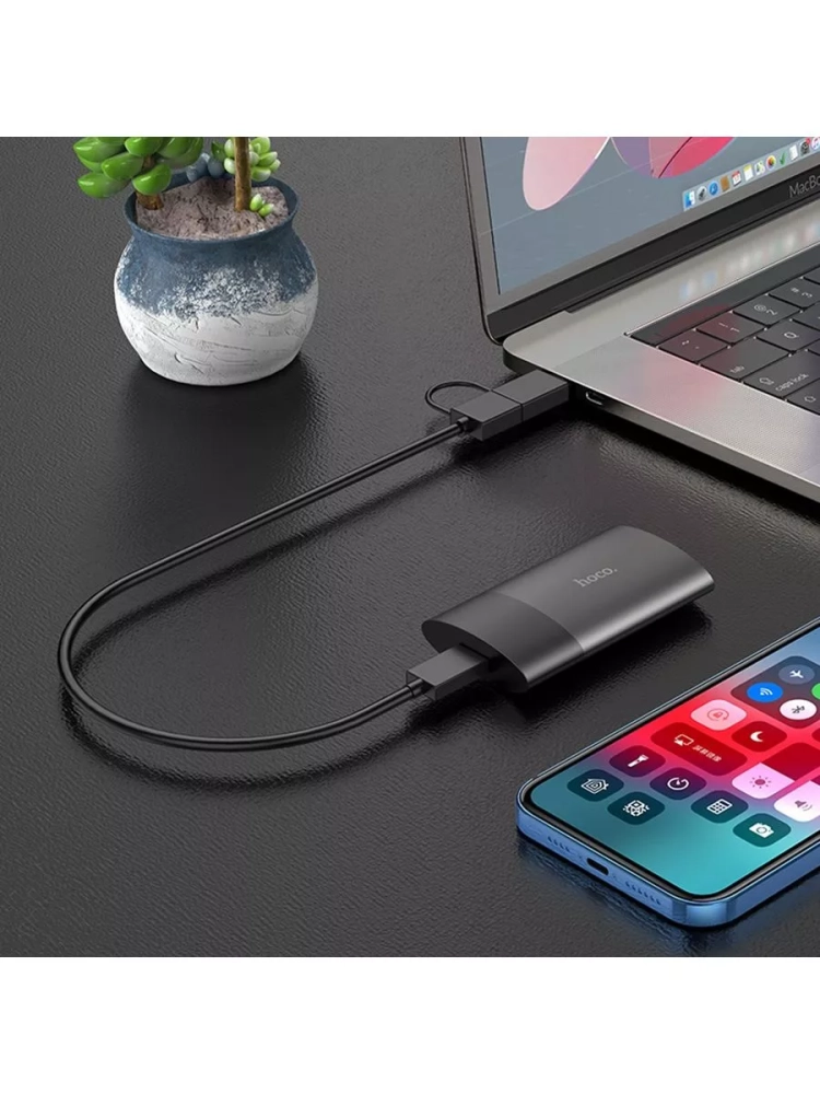 HOCO UD12 128GB — внешний SSD-накопитель, который можно использовать с компьютерами, ноутбуками, планшетами, смартфонами, видео-фотокамерами, серверами и другими устройствами.