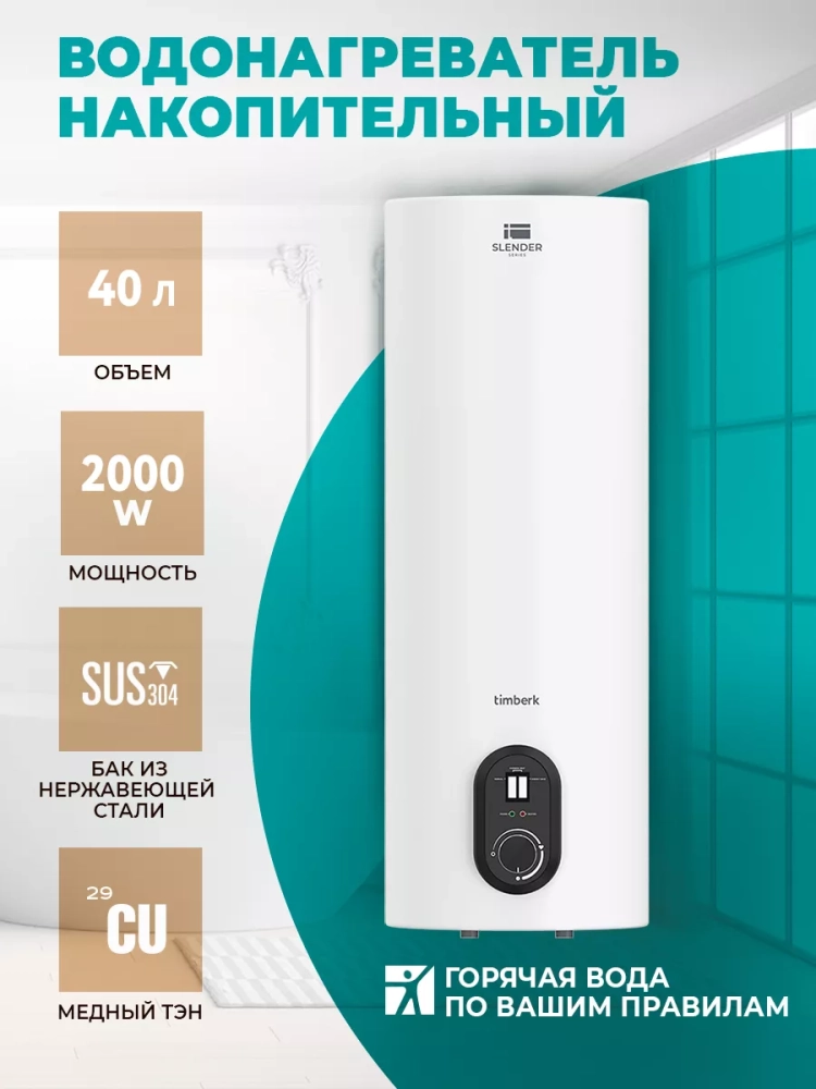Суперузкий накопительный водонагреватель серии - Slender функциональное решение для небольших помещений. Не отказывайте себе в комфорте!