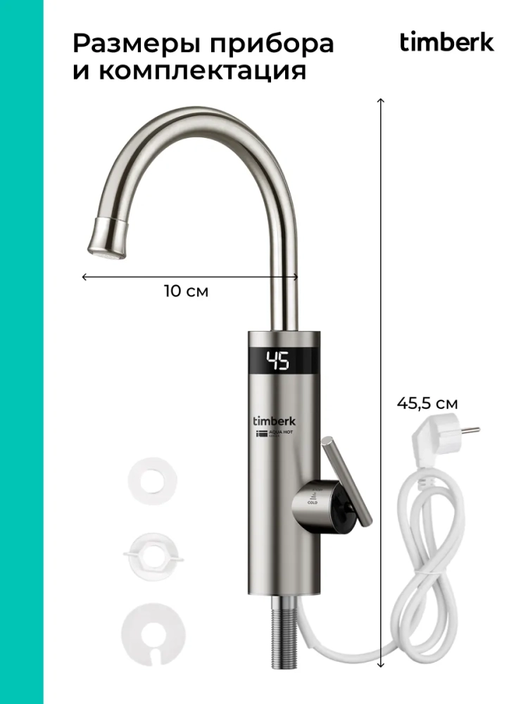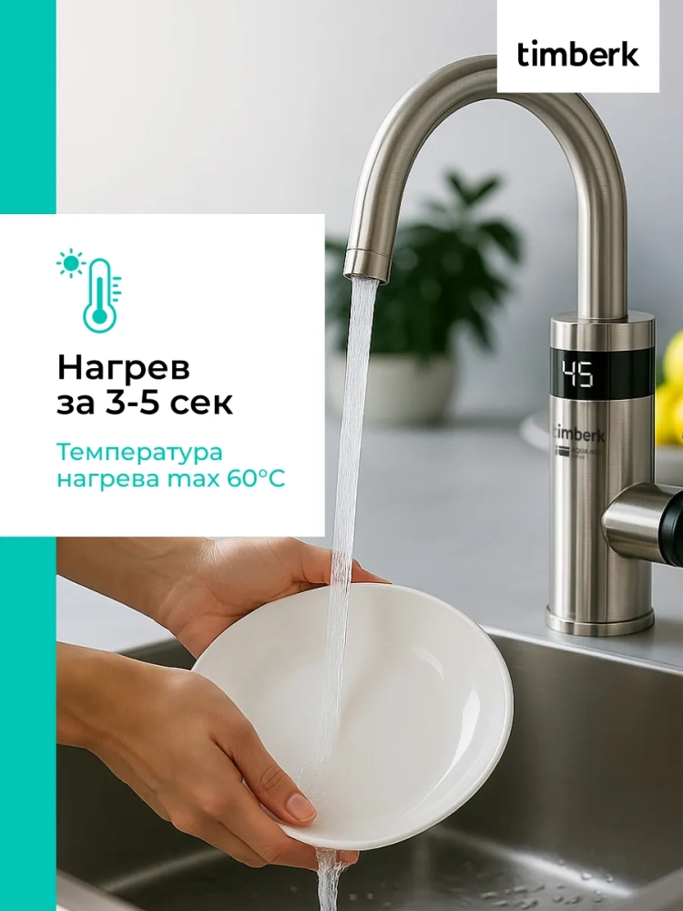 Моментальный нагрев воды – встроенный медный нагревательный элемент обеспечивает быстрый подогрев воды, что позволяет мгновенно получить комфортную температуру для бытовых и хозяйственных нужд