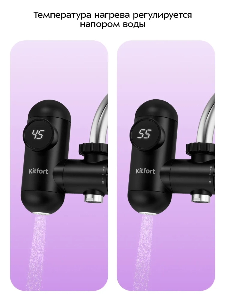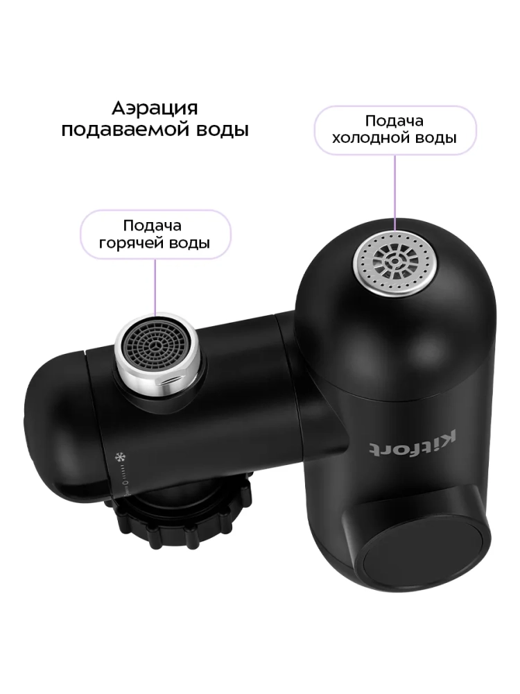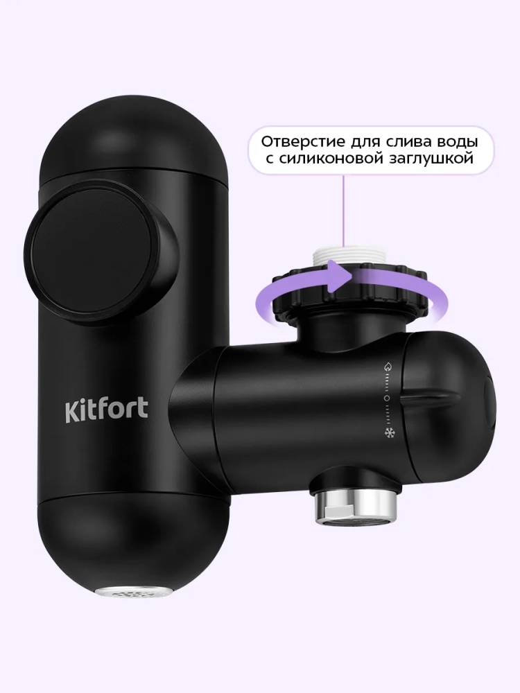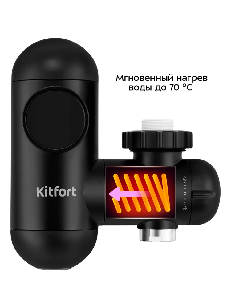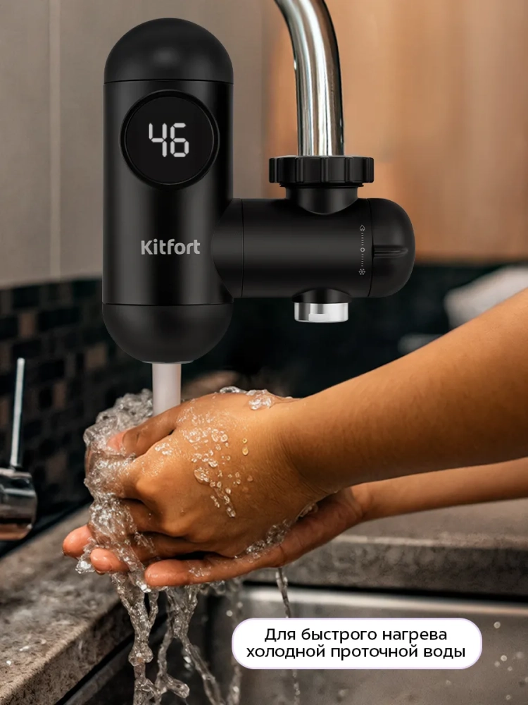 Проточный водонагреватель Kitfort KT-6524 предназначен для быстрого нагрева холодной проточной воды. Водонагреватель отличается простотой и легкостью монтажа: закрепите устройство на вашем смесителе вместо аэратора. В комплекте поставляются муфты для смесителей разного диаметра.