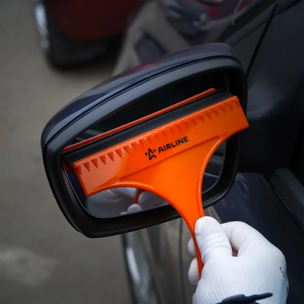 Водосгон изготовлен из термопрочного пластика. Лезвие водосгона изготовлено из резины, которая отличается высокими показателями мягкости, что позволяет очищать стекла без царапин. Ширина рабочей поверхности изделия равна 16 см. Водосгон со скребком для удаления наледи может быть использован в любое время года.