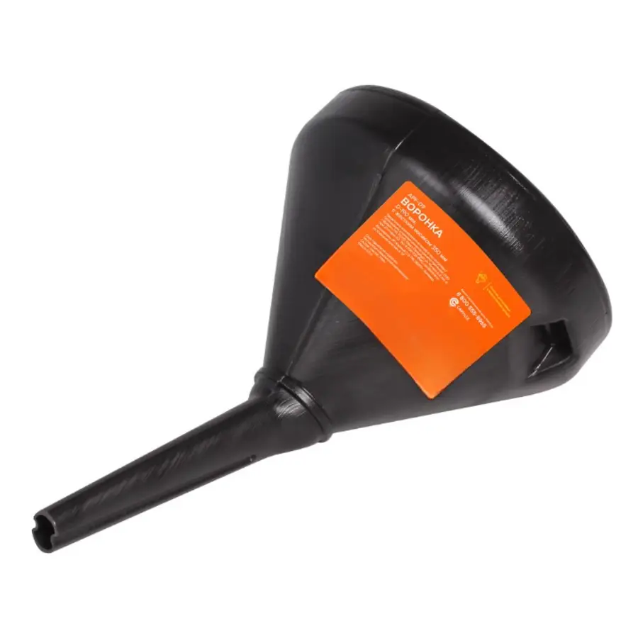 Воронка поможет аккуратно произвести процесс переливания жидкостей. Данная воронка имеет диаметр 190 мм. Благодаря большой горловине воронки изделие подходит для переливания большого объема жидкости. Воронка укомплектована стальной специальной мелкоячеистой сеткой для фильтрации мусора при переливании.