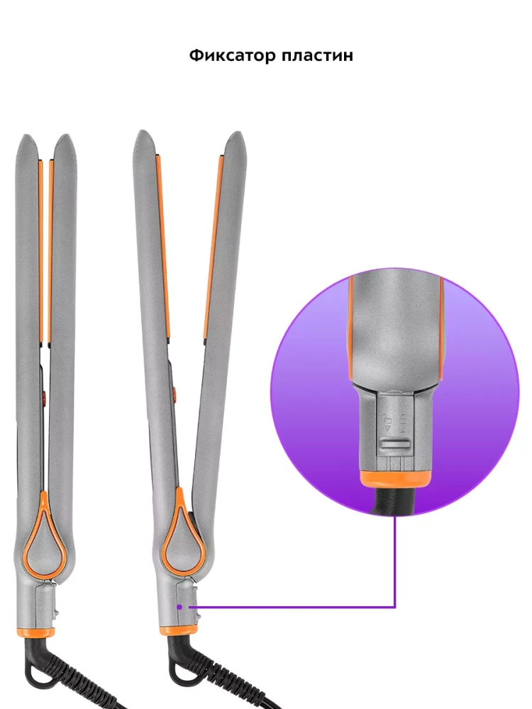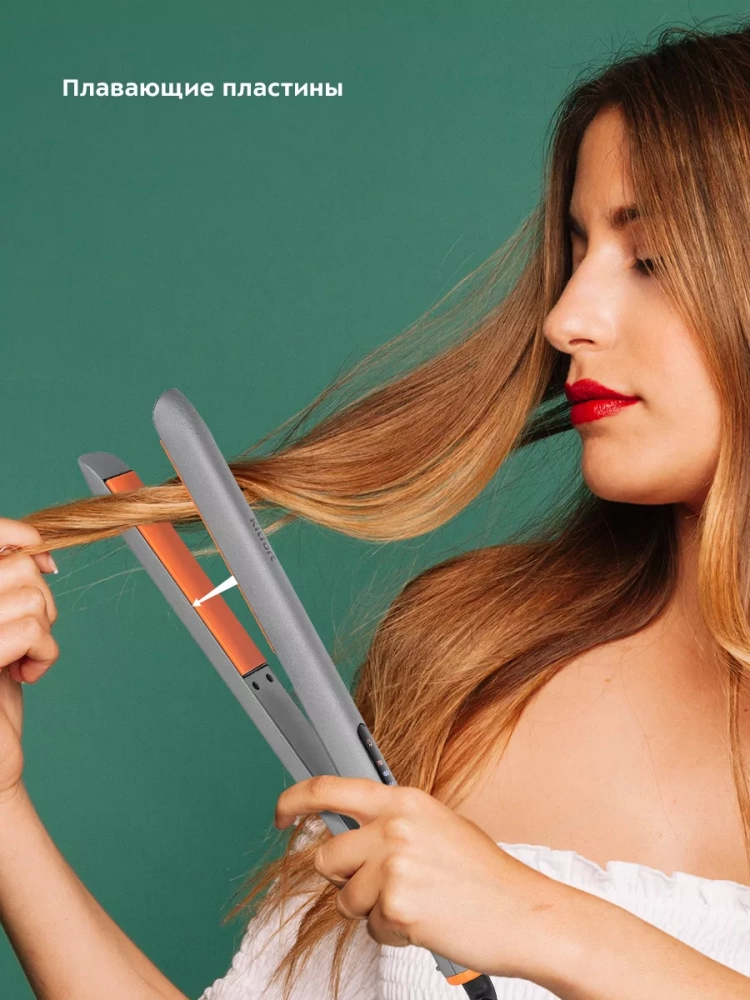 Пластины прибора являются плавающими — когда давление на пластины слишком большое, пластина уходит вглубь корпуса, тем самым защищая волосы от повреждения. Также плавающие пластины «подстраиваются» под толщину пряди, и прибор прогревает всю прядь равномерно.