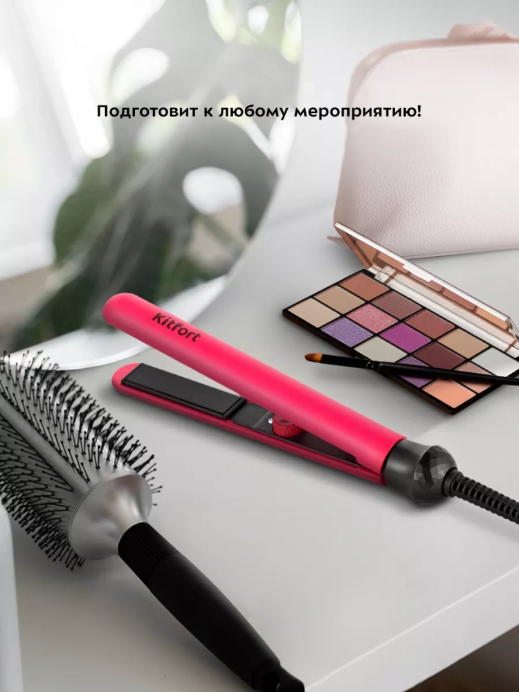 Выпрямитель для волос Kitfort KT-3268 позволит быстро выпрямить волосы и сделать красивую укладку. Керамическое покрытие нагреваемых пластин бережно выравнивает структуру волос, делая их гладкими и блестящими, а также снимает статическое электричество. Пластины нагреваются до 190±10 °С за 3 минуты. KT-3268 прост в управлении. Переключатель, с помощью которого устройство включается и включается, находится на внутренней части устройства, это помогает избежать случайного выключения во время использования выпрямителя. Прибор легкий и компактный, его удобно взять с собой в путешествие. Шнур оснащен защитой от перегиба, что увеличивает срок службы устройства.