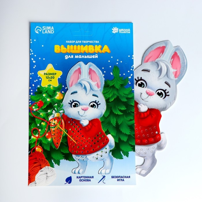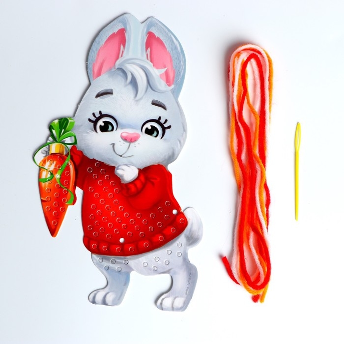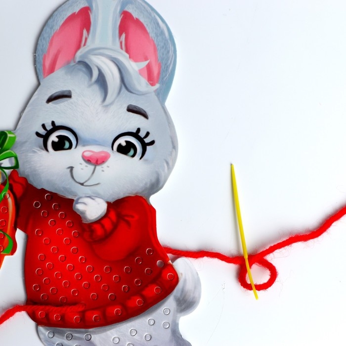 Вышивка пряжей на новый год «Кролик» на картоне, новогодний набор для творчества