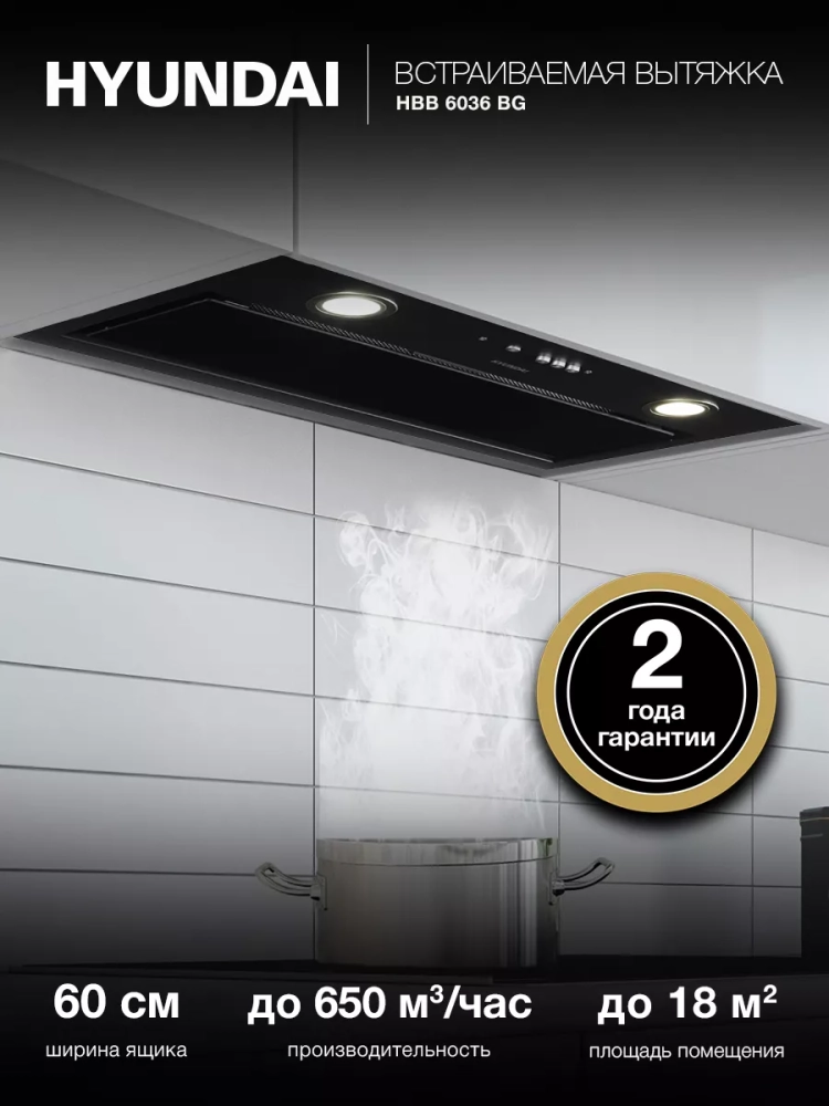 Встраиваемая вытяжка Hyundai HBB 6036 BG позволит готовить в максимально комфортных условиях благодаря активной циркуляции воздуха и будет препятствовать проникновению запахов пищи за пределы кухни.