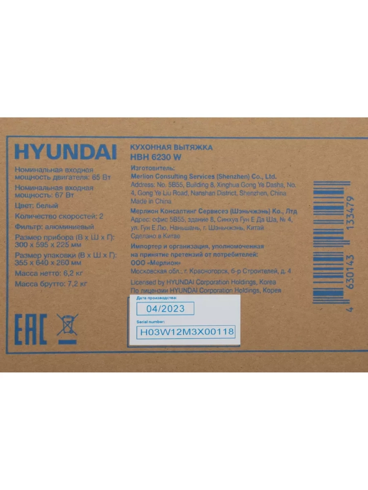 Встраиваемая вытяжка Hyundai HBH 6230 W белый, количество двигателей: 1, режим работы: отвод/циркуляция, кулисные переключатели управление, алюминиевый жироулавливающий фильтр