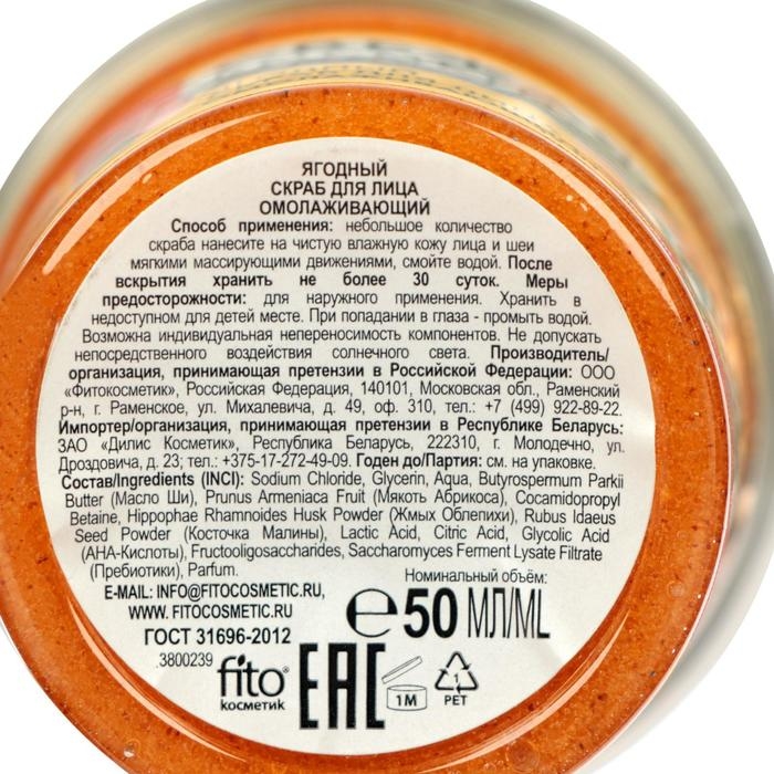 Ягодный скраб для лица «Свежая косметика», омолаживающий, 50 мл