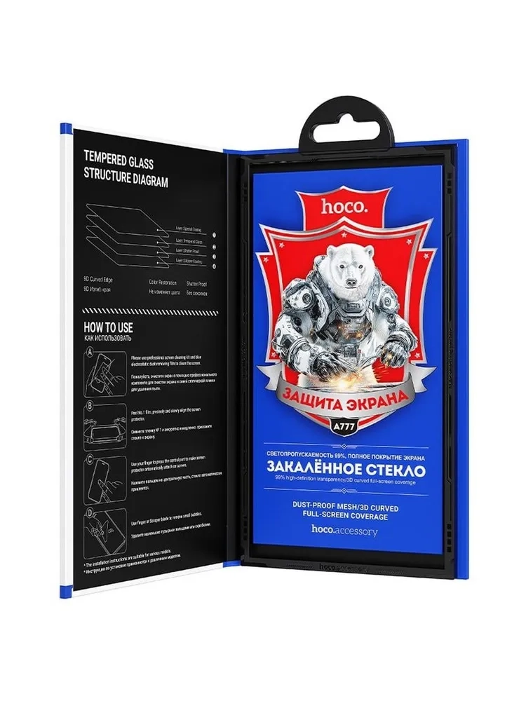 Противоударное защитное стекло HOCO 9D A777 предназначено для защиты экрана смартфонов iPhone 16 PRO MAX Полноэкранное прозрачное 9D стекло имеет небольшие изгибы по краям и качественное олеофобное покрытие, что дает максимально приятные тактильные ощущения при использовании смартфона. Антибликовое покрытие позволит комфортно пользоваться гаджетом даже при самом ярком солнце. Стекло не влияет на работу сенсорного дисплея и ложится на поверхность, не образуя пузырьков. Защитное стекло адаптировано под любые чехлы и бамперы. Высокое качество средства и прочность материалов позволяют защитить экран не только от царапин и трещин, но и при падении, ударах о твердые поверхности с небольшой высоты. Закаленное стекло не матовое, не антишпион. Стекло имеет прочность 9H, очень прочное и тонкое (толщина составляет 0.4 мм), что делает его использование незаметным. По периметру аксессуара есть объемная черная рамка, не уменьшающая размер родного экрана. Покрытие глянцевое. Бронь поверхность хорошо откликается на прикосновения. Технология нанесения клея по всей поверхности позволяет установить износостойкое бронированное стекло самостоятельно в домашних условиях. Не нужно быть профессионалом по наклейке гибкого стекла для мобильных телефонов, потому что в комплекте есть всё необходимое для быстрой и удобной установки. Изделие поставляется в плотной упаковке, что исключает повреждения во время транспортировки. В комплект входит: защитное бронестекло на жесткой подложке, тряпочка из микрофибры: влажная салфетка для стекол, а также стикеры (наклейка) для удаления пыли. Противоударное оригинальное защитное стекло HOCO лучшее качество, проверенное временем!