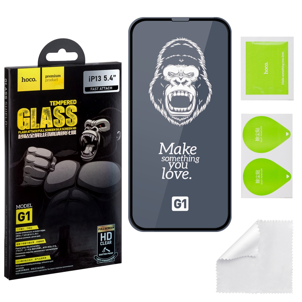 Защитное стекло IPH 13 Mini 5.4 (2021) Full Screen G1 HOCO черное