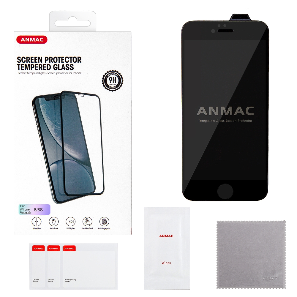 Защитное стекло IPh 6 3D ANMAC черное усиленное Арт.1137182