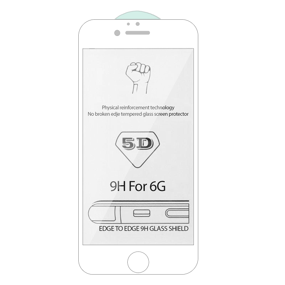 Защитное стекло Iph 6 5D 0.3 mm без упаковки белое (без возврата и обмена)