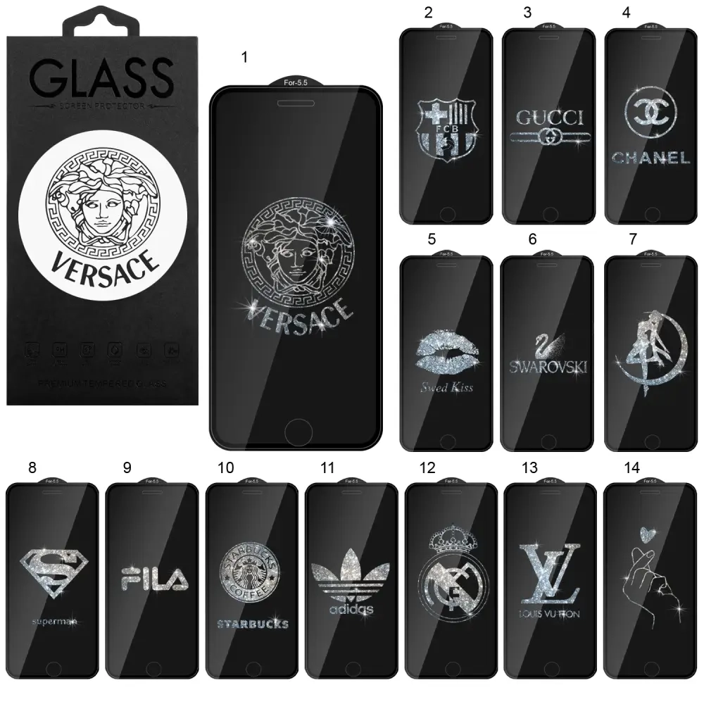 Защитное стекло iPh 7/8 Plus 3D с LOGO с блестками