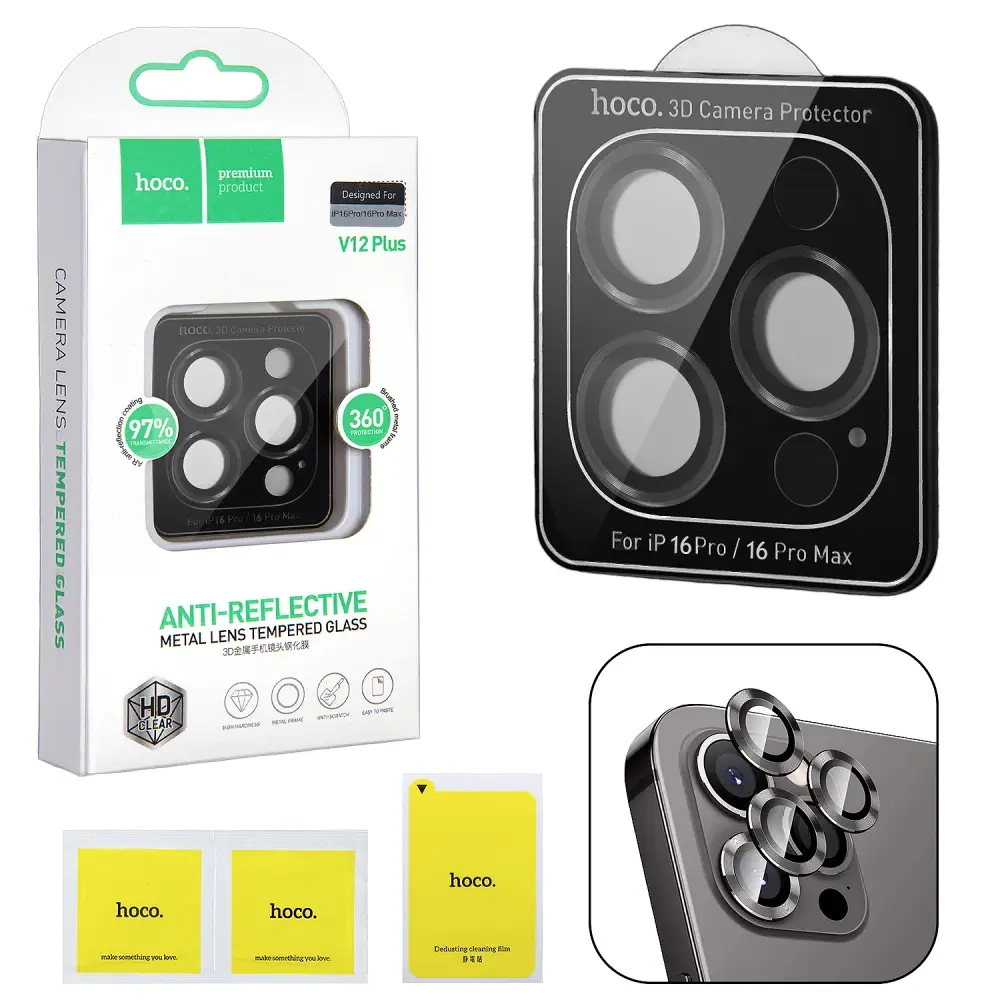 Защитное стекло на линзы камеры iPhone 16 Pro/16 Pro Max V12 plus 3D Hoco Black