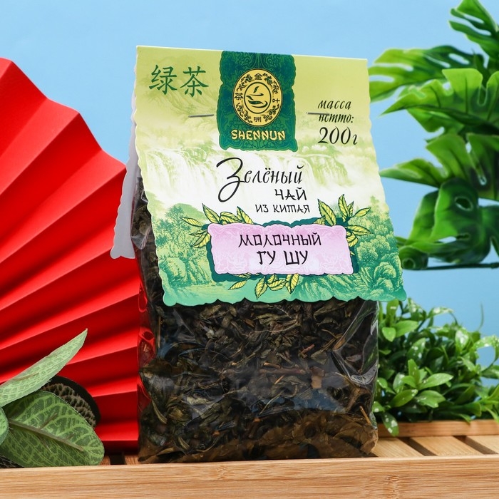 Зеленый китайский крупнолистовой чай в прозрачном пакете SHENNUN, МОЛОЧНЫЙ ГУ ШУ, 200 г