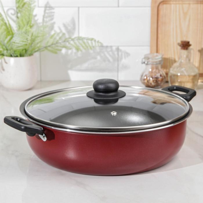 Жаровня-сковорода «Эксперт», 4 л, d=28 см, стеклянная крышка, антипригарное покрытие, цвет бордовый