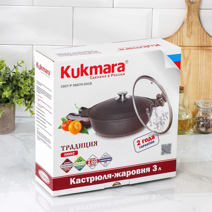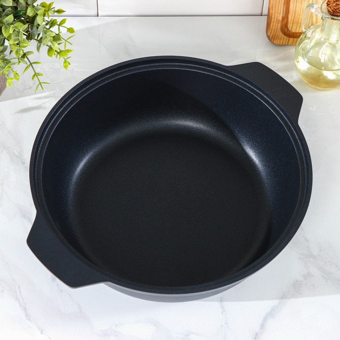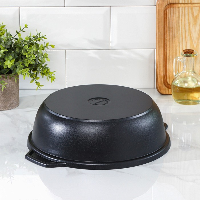 Жаровня «Традиция», 3 л, d=29 см, h=8,5 см, алюминиевая крышка, антипригарное покрытие, цвет чёрный