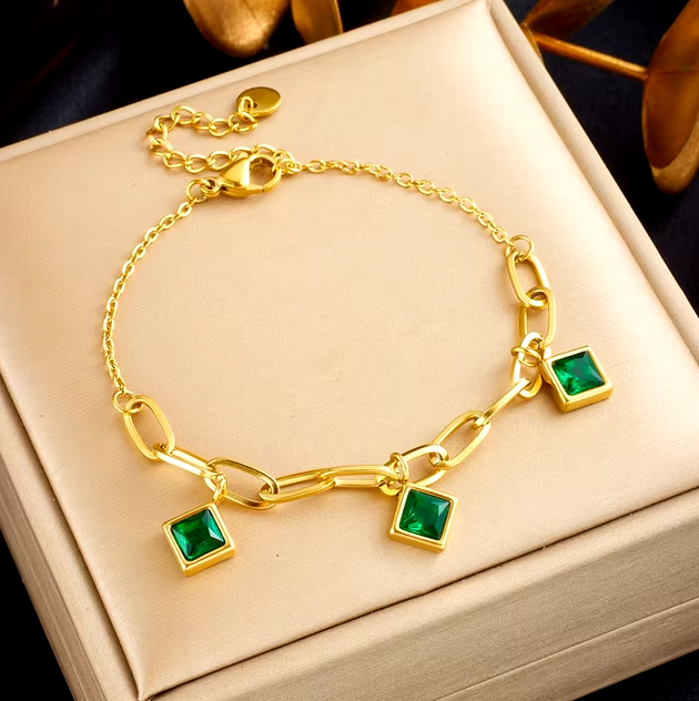 Женский браслет DIEYURO из нержавеющей стали 316L, с шармами и цепочками зеленый