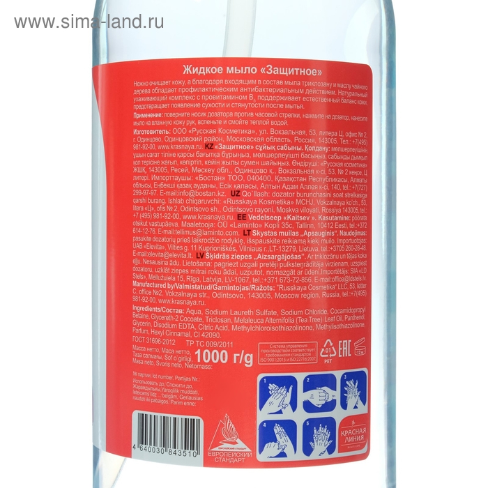 Жидкое мыло Красная линия "Защитное" антибактериальное, 1000 мл