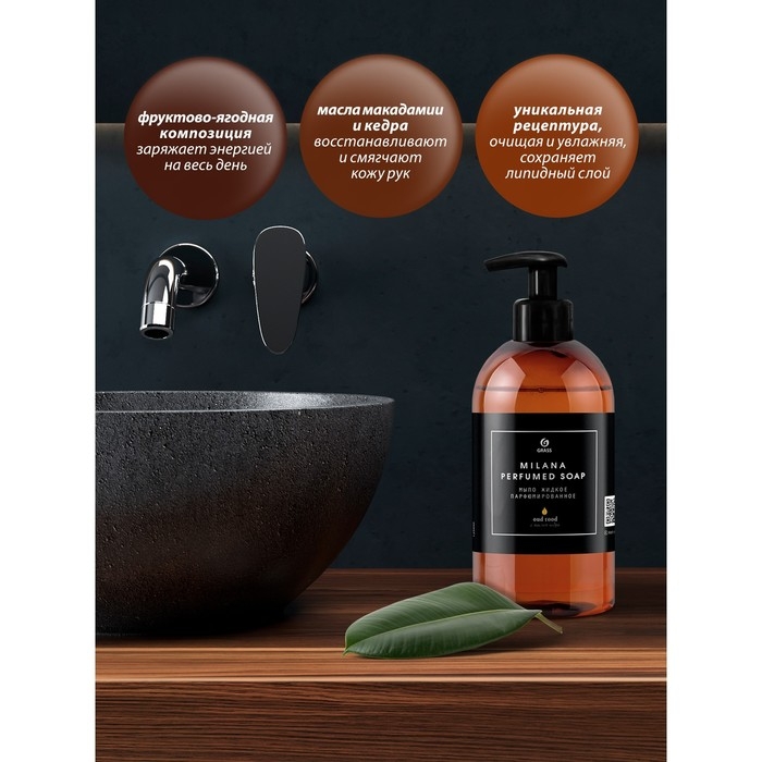 Парфюмированное жидкое мыло Milana "Oud Rood" подарит коже рук стойкий свежий аромат. Фруктово-ягодная композиция с нотами яблока и смородины, фрезии и мускуса, ванили и древесины зарядит энергией на весь день.