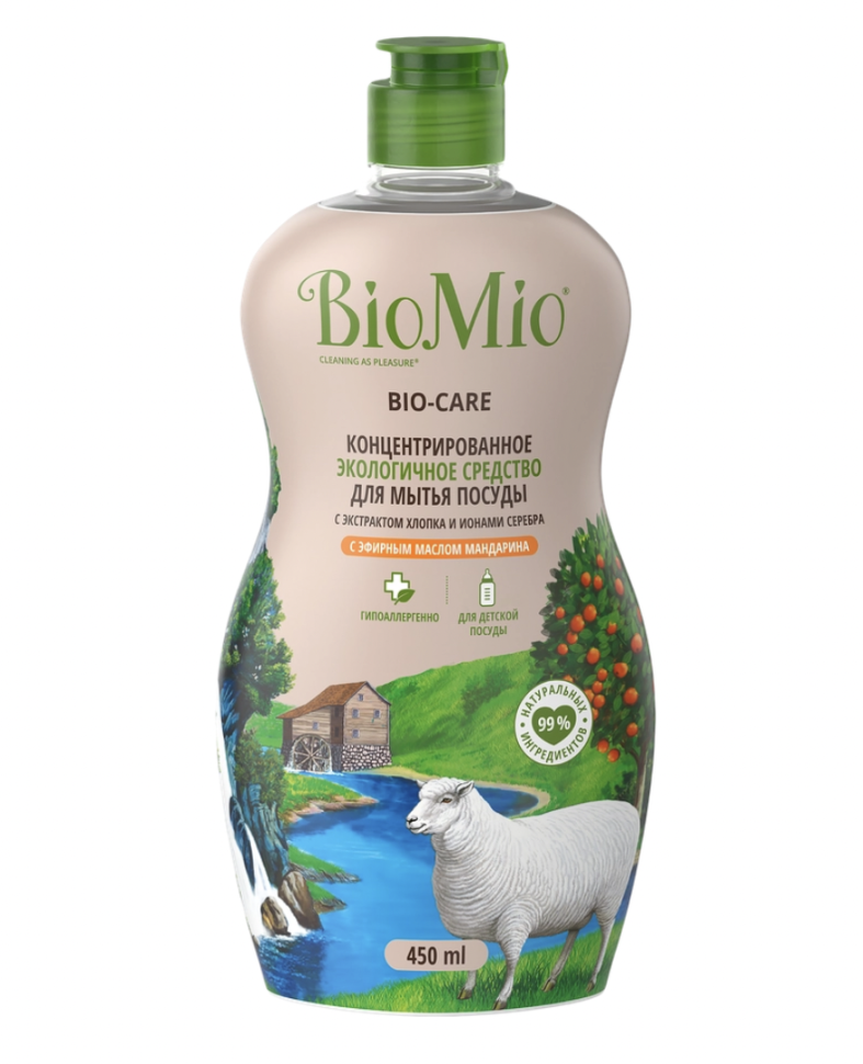 Жидкое средство для мытья посуды, овощей и фруктов BIO MIO Bio–Care Мандарин, 450мл
