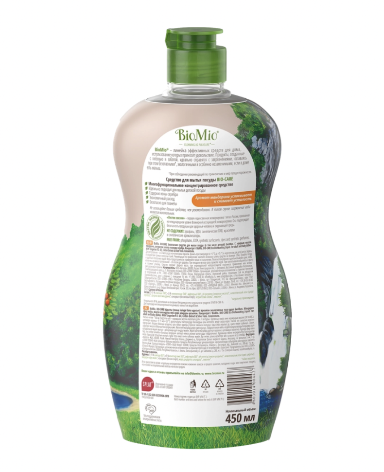 Жидкое средство для мытья посуды, овощей и фруктов BIO MIO Bio–Care Мандарин, 450мл Способ применения, дозировка Нанесите несколько капель средства на влажную губку. Помойте посуду, овощи или фрукты и тщательно ополосните водой. Информация для аллергиков Гипоаллергенно. Производитель ООО «Органик Фармасьютикалз» Меры предосторожности После использования тщательно вымойте руки, чтобы исключить случайное проглатывание – это опасно для здоровья. При попадании в глаза сразу промойте водой. При проглатывании обратитесь к врачу и покажите упаковку. Условия хранения При температуре от +5 до +25 в недоступном для детей месте, беречь от воздействия прямых солнечных лучей. Экологичное и многофункциональное жидкое средство BIO MIO Bio-Care идеально подходит для мытья детской посуды, овощей и фруктов. Содержит ионы серебра. Экономично расходуется и безопасно для планеты. Не содержит: фосфаты, ЭДТА, синтетические ПАВ, красители и ароматизаторы. Состав: Анионные ПАВ (5–15%), неионогенные ПАВ (менее 5%), амфотерные ПАВ, регулятор pH (лимонная кислота), антисептический агент (цитратсеребра), эфирное масло мандарина, консервант (бензиловый спирт), экстракт семян хлопка, лимонен.