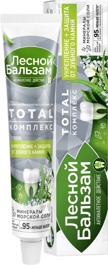 Зубная паста «Лесной бальзам» на отваре трав с экстрактом алоэ вера и белого чая сочетает в себе сразу 3 действия, обеспечивая максимальную защиту всей полости рта: укрепляет десны, защищает от кариеса, сохраняет свежесть дыхания в течение дня.
