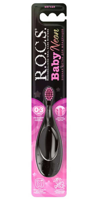 Зубная щетка детская R.O.C.S. Baby Neon мягкая 0–3 лет
