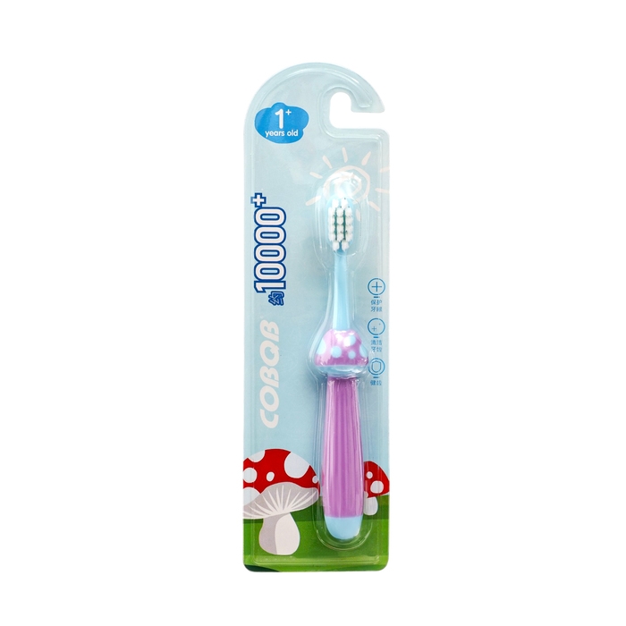 Нестандартный размер и форма чистящей головки обеспечивают доступ к самым потаённым уголкам детского рта. Ручка в форме грибочка удобна для детской руки, не скользит и позволяет ребёнку легко контролировать процесс чистки. После использования щётку можно поставить на основание для вертикального хранения.