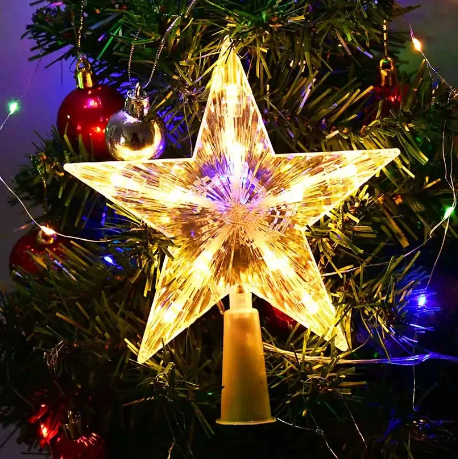 Звезда на елку светящаяся разноцветная 16 см